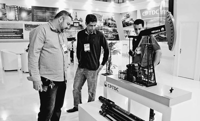 2014年9月,两年一度的巴西里约石油天然气展在巴西里约热内卢会展中心举行。作为拉美最重要的石油天然气行业会展,展会设置了14个大型国际综合展厅,吸引了全球1300余家企业。图为参观者在中国公司展台现场咨询。